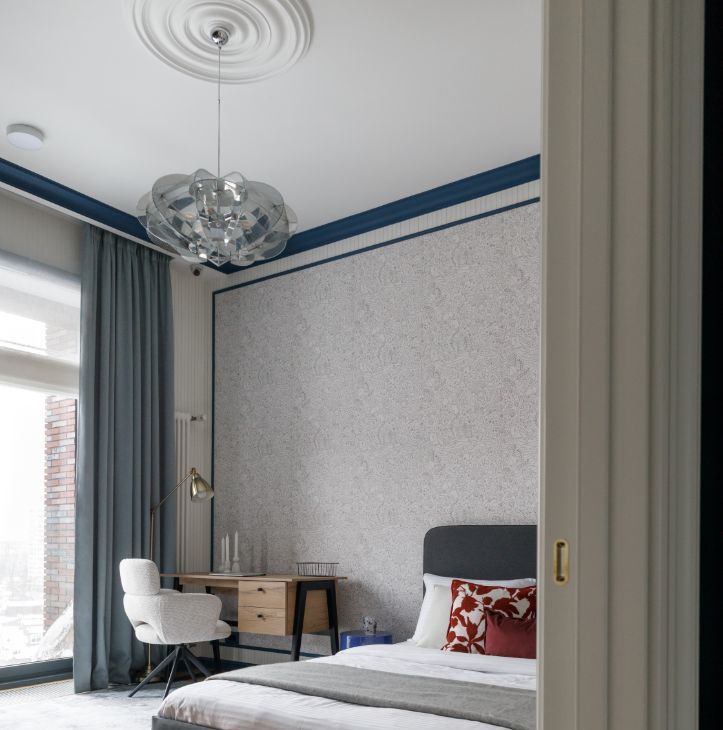 В мастер-спальне есть гардеробная, отдельный санузел с душевой кабиной и ванной, кровать180х200, дизайнерская люстра,разные сценарии освещения.