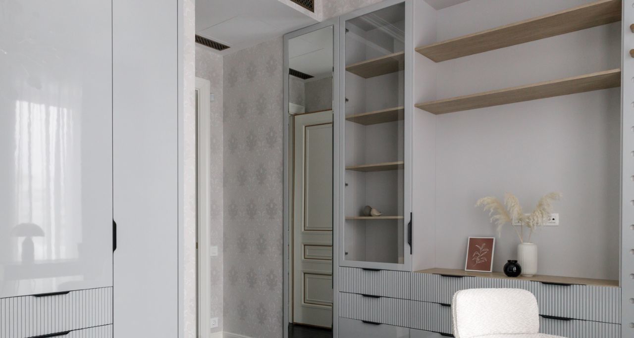 Вторая спальня с рабочим местом и системой хранения.