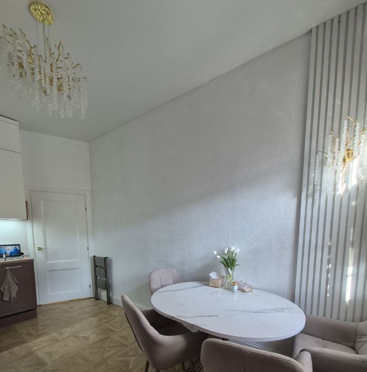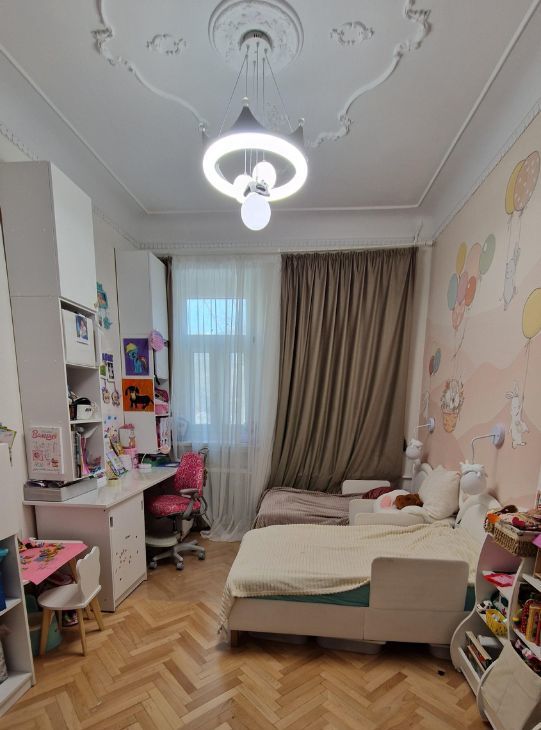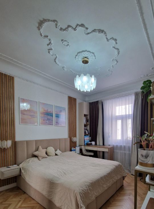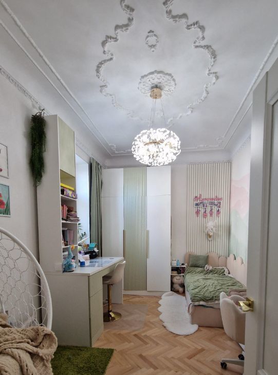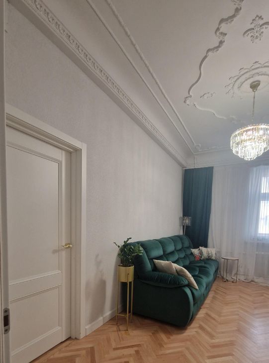Эта эстетичная светлая квартира с оригинальными лепными потолками и паркетными полами не оставит вас равнодушными.