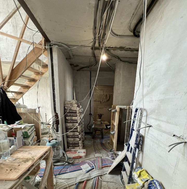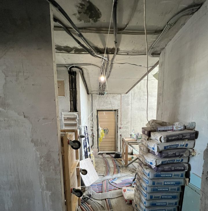 Выполнена черновая подготовка стен, монтаж новых инженерных коммуникаций (вентиляция, вода, отопление, электричество, защита от протечек, слаботочка, трассы кондиционеров во все комнаты). Закуплены дизайнерские радиаторы, готовые к установке, крупноформатный керамогранит и кварцпаркет на всю квартиру, встроенные смесители, черновые материалы. Есть дизайн-проект.