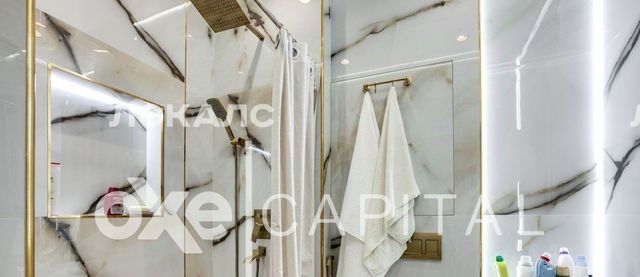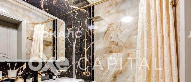 Планировка: кухня-гостиная, 3 спальни, 2 санузла, постирочная, гардеробная. Выполнена дизайнерская отделка в стиле Grey. Паркетная доска из натурального дуба бренда Siberian Floors Prime, в ванной использован керамогранит фирмы Archskin Pietra di Savoia Perla, раковина из натурального камня, смесители Dornbracht VAIA.