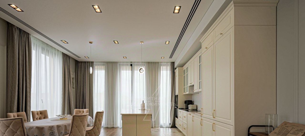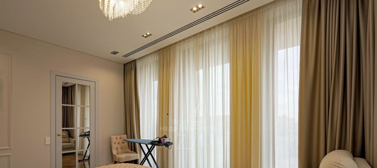 Планировка: кухня-гостиная, детская/кабинет, гостевая спальня, мастер-спальня с гардеробной, два с/у с душевой и ванной.