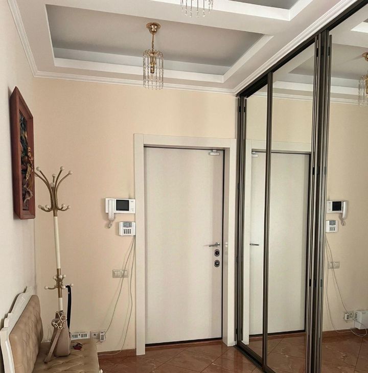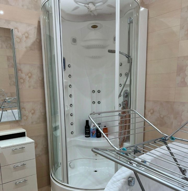 Квартира полностью готова к заселению. В каждой комнате и на кухне есть вся необходимая мебель и техника: кондиционер, холодильник, телевизор, посудомоечная , сушильная и стиральная машины. Планировка включает в себя две ванные комнаты: одна с ванной(джакузи)+душевая, другая только с душевой кабиной.