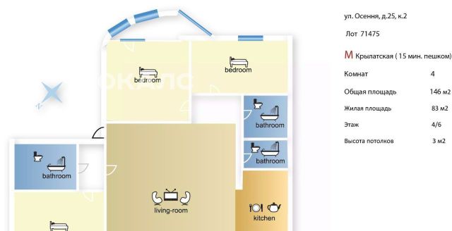 4-к кв. Москва Осенняя ул., 25К2 (146.0 м²)