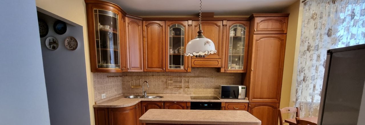 Продается великолепная по своей планировке и расположению 4-х комнатная квартира в ЖК бизнескласса Митинский оазис в экологически чистом районе Москвы Митино, закрытая территория с видеонаблюдением. Площадь квартиры по документам 132,6, фактическая 137,8 м², расположена на 3-ем этаже 8-этажной секции 4-х подъездного монолитного дома 2001 года постройки. Идеальная планировка для проживания семьи с детьми. Большая прихожая 7,4 м², холл 16,9 м², три изолированные комнаты (две детские 15,1 и 15,8 м² и родительская спальня 18,2 м²), большая гостиная 30,8 м² объединенная аркой с просторной кухней 14,6 м², также в квартире имеется гостевой санузел 1,8 м², большая ванная комната 7 м², две гардеробные комнаты 1,4 и 3,8 м², зона библиотеки, две застекленные лоджии 3,1 и 3,2 м². Окна квартиры выходят на две стороны, на тихий двор без машин и на сторону подъезда. В доме имеется двухуровневый паркинг, за отдельную плату продается большое машино-место площадью 28,8 м², расположенное на верхнем сухом уровне паркинга, также у дома имеется большая гостевая парковка. Дом очень удачно расположен внутри ЖК, через не оживленную дорогу Митинский природный ландшафтный парк площадью 140 Га со своим прудом, пешеходными дорожками, велодорожками, местами для отдыха и развлечений, зимой работают 2 катка, шикарная горка для катания на тюбингах, в 100 м от дома находится школа, рядом с домом детский сад, в шаговой доступности еще один садик и 2 бассейна. В 5 минутах ходьбы от дома расположен гипермаркет Глобус, фитнес-центр DDX, торгово-развлекательный центр Митино-парк. Отличная транспортная доступность, рядом Пятницкое, Волоколамское и Новорижское шоссе, станция Пенягино МЦД-2, рядом с домом находится остановка общественного транспорта, от которой легко добраться до ближайшей станции метро Митино за 5 минут, либо доехать до центра города. Квартира полностью оборудована импортной мебелью (обсуждается отдельно), обе детские комнаты, спальня, гостиная. Кухня привезена из Италии, сделана из натуральных фасадов дерева светящаяся акация, окна застройщика заменены на пластиковые фирмы Rehau, установлены 2 кондиционера фирмы Daikin, двери производства Испания с натуральным шпоном красного дерева. Квартира продается в связи с разъездом со взрослыми детьми, все квартиры для переезда куплены. Один и единственный взрослый собственник, свободная продажа.