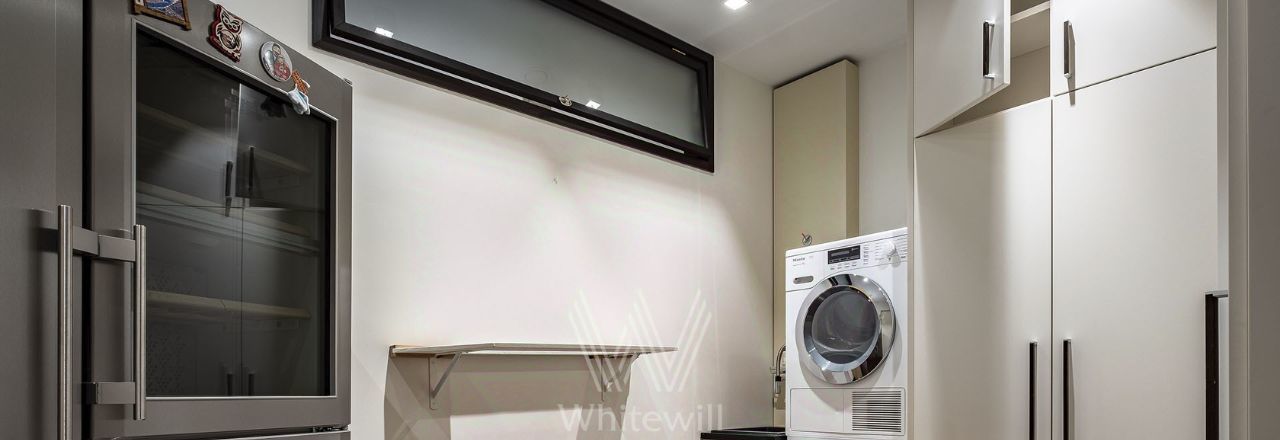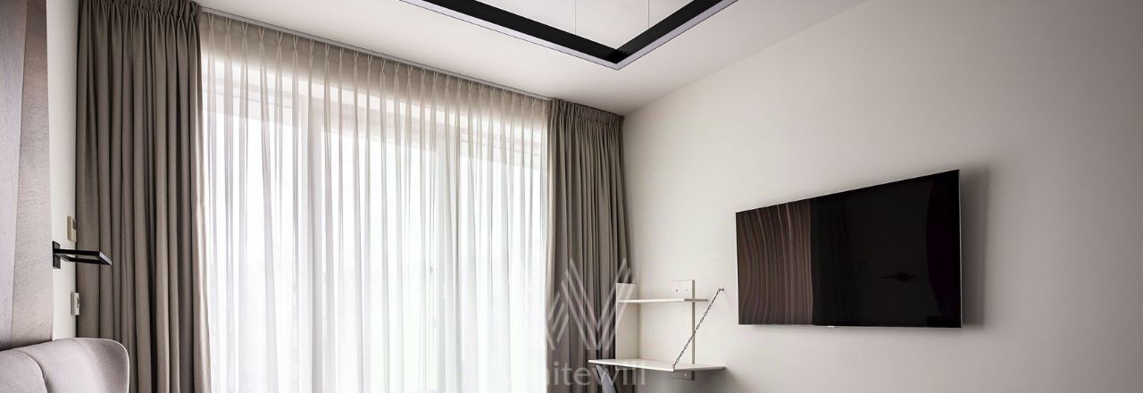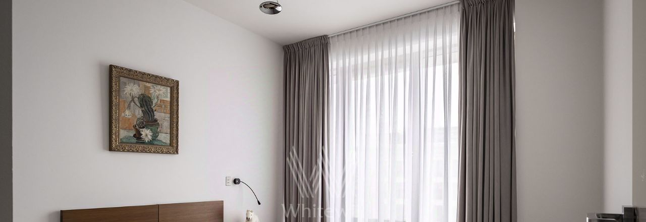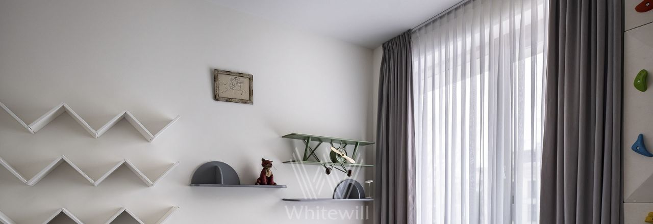 Планировка: просторная гостиная, обеденная зона, зона кухни со встроенной техникой, мастер-спальня со своей ванной комнатой и гардеробной, вторая спальня, детская спальня, большая постирочная комната, гардеробная, балкон с панорамным остеклением в пол. Квартира полностью меблирована и укомплектована премиальной техникой. Установлена система кондиционирования, стиральная, сушильная и посудомоечная машины. Два машиноместа входят в стоимость аренды.