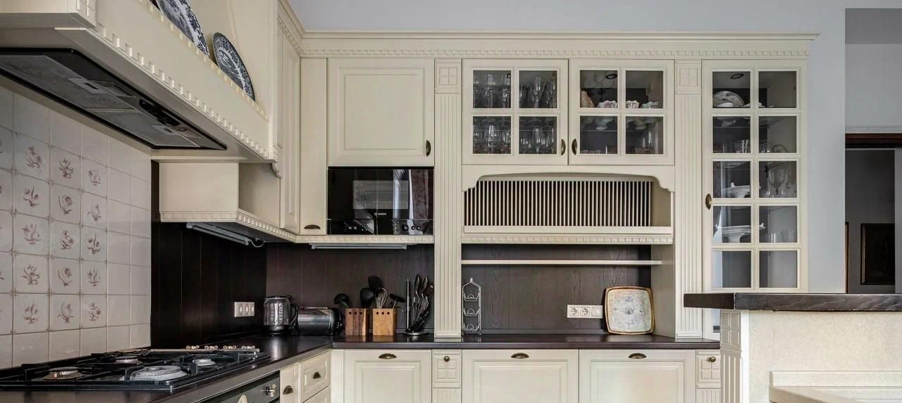 Кухня с премиальной техникой: холодильник, газовая панель, духовка, посудомойка, стиральная машина с сушкой;