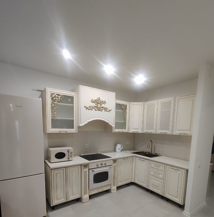 В квартире сделан ремонт, поэтому она выглядит стильно и современно. Здесь есть все необходимое для комфортного проживания: холодильник, стиральная машина, микроволновая печь, чайник, духовой шкаф, мебель как на кухне, так и в комнатах, 2 санузла. Планировка предусматривает просторную кухню площадью 25 кв. м, что отлично подходит для семейных обедов и встреч с друзьями. В квартире также есть один совмещенный и один отдельный санузел, в ванной комнате установлена ванна.