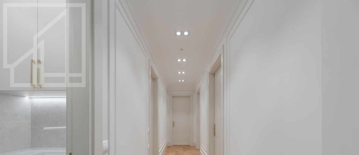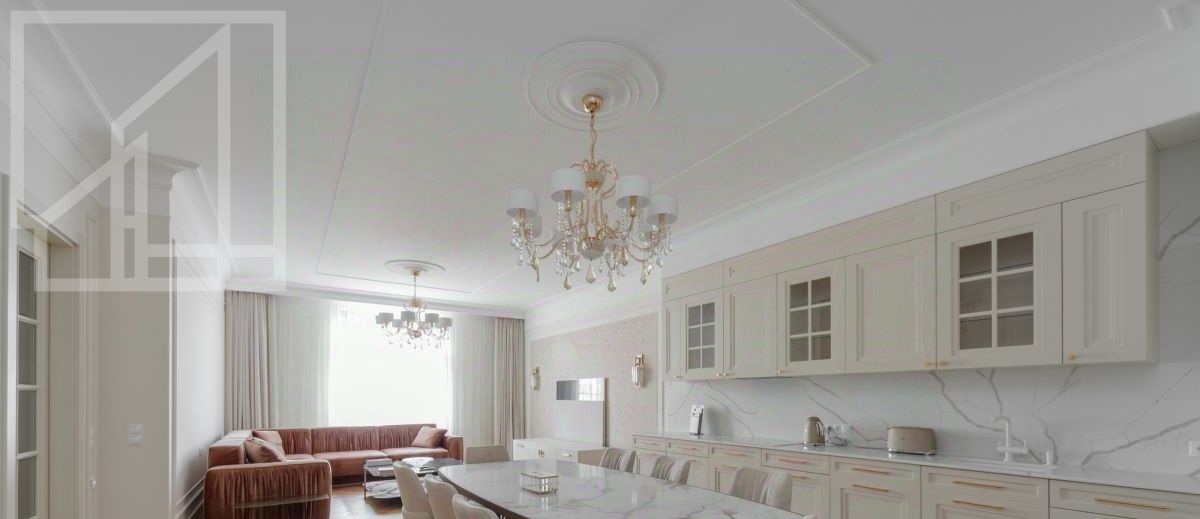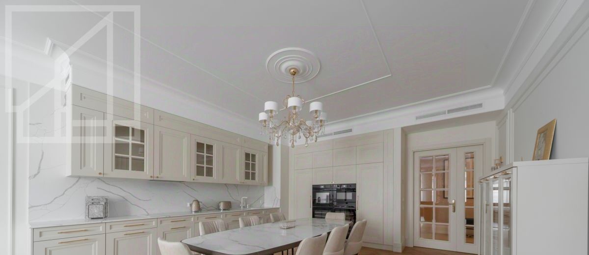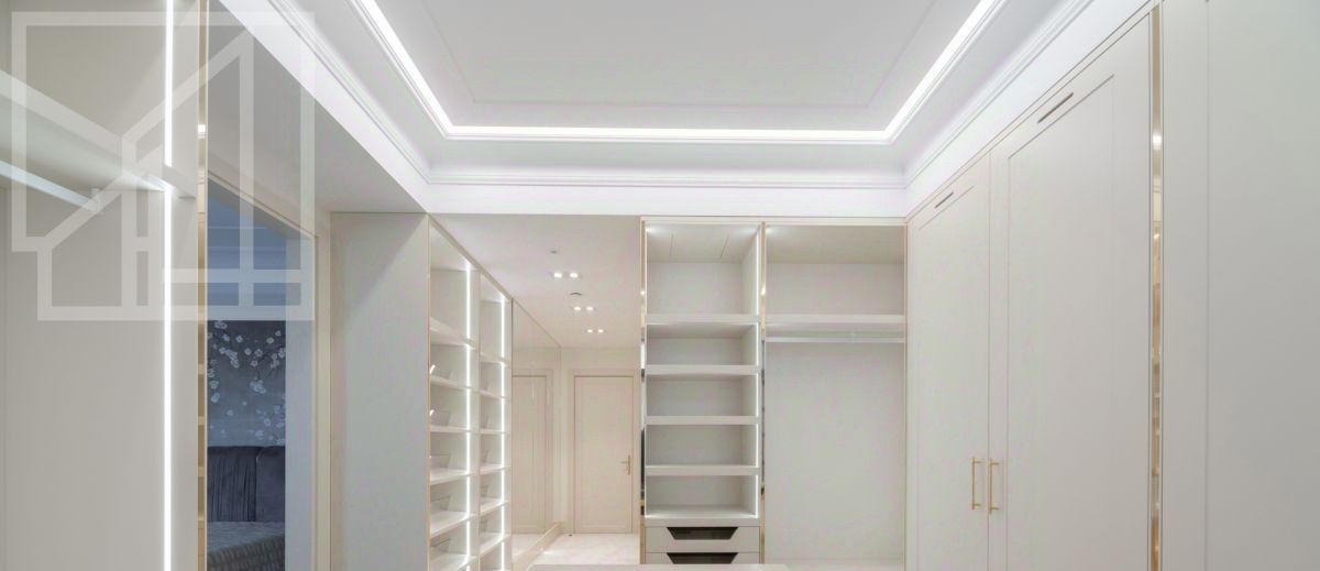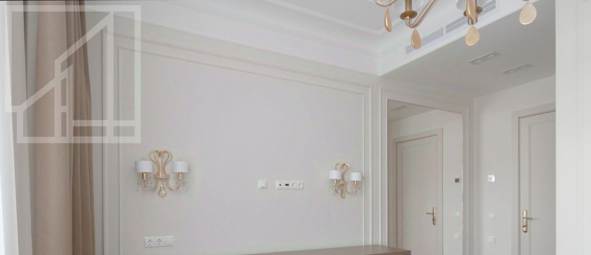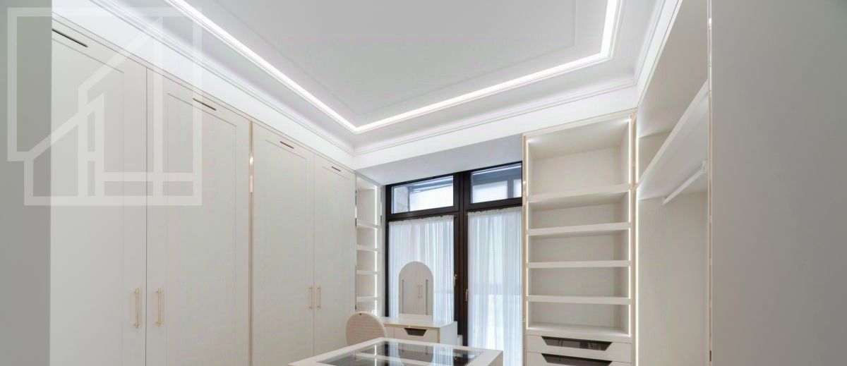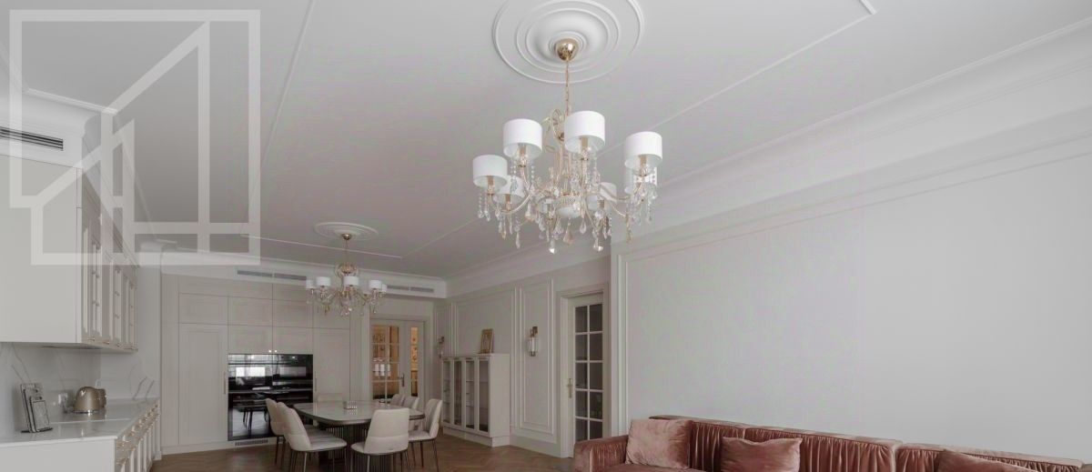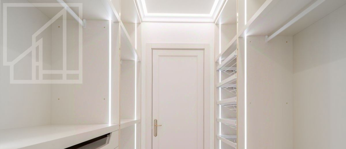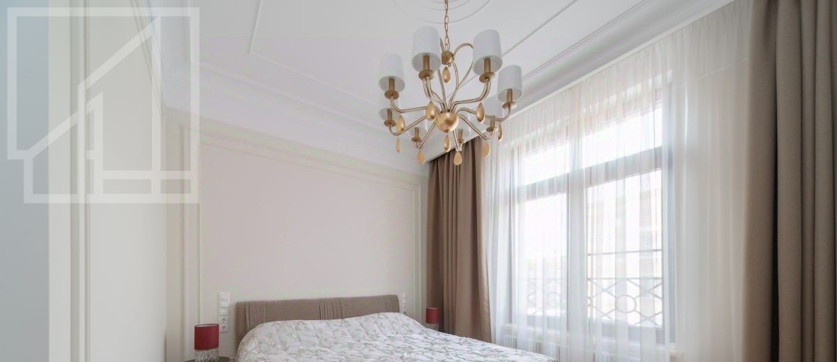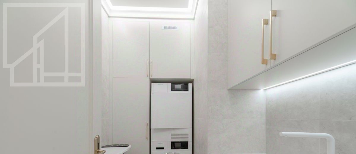 Планировка: гостиная-столовая-кухня, три спальни, четыре гардеробные, три санузла, постирочная. Потолки 3,2м. Окна выходят во внутренний двор. Квартира полностью меблирована, имеется вся техника для комфортного проживания.