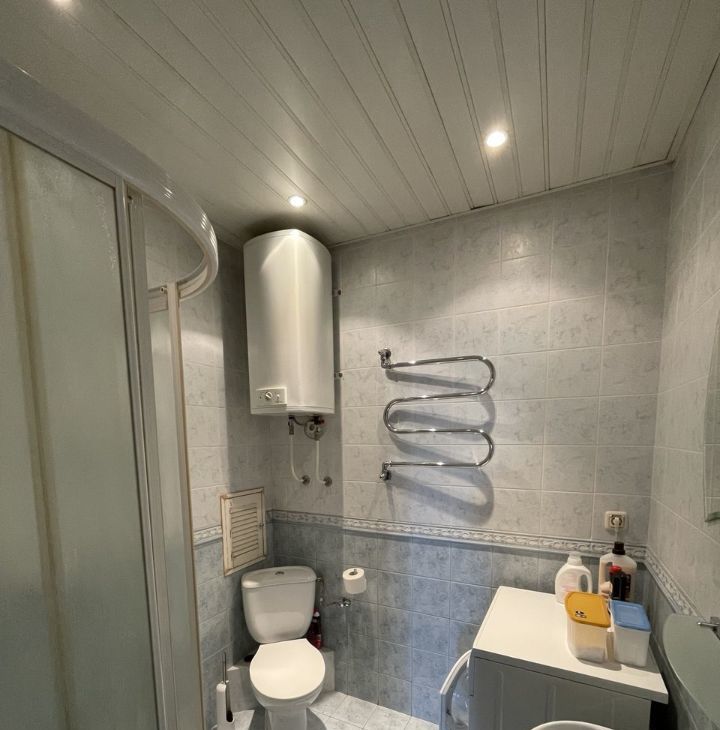 При входе, второй санузел, с душевой кабиной.
