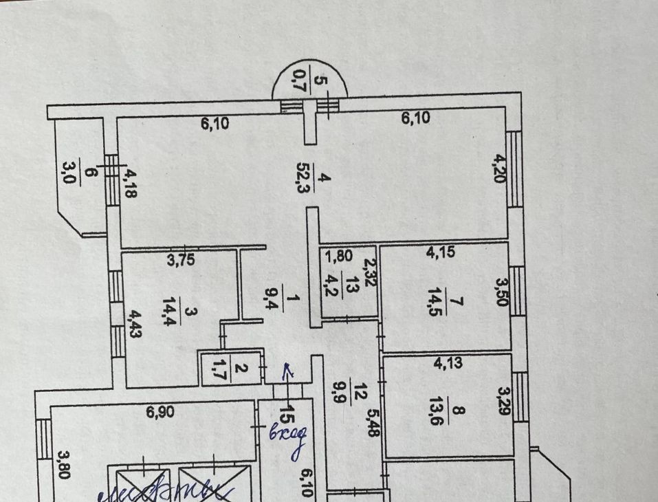 Окна выходят на три стороны!