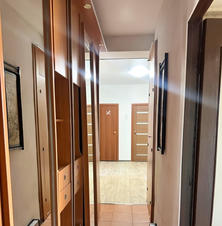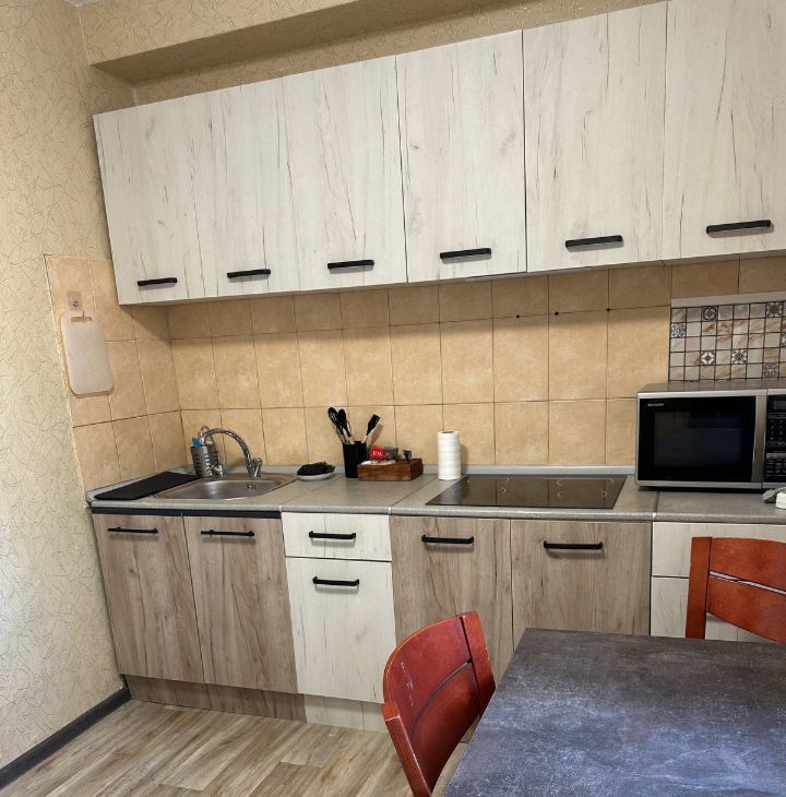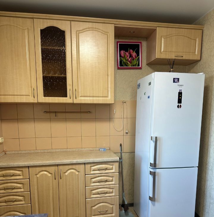 В квартире выполнен косметический ремонт. Имеется вся необходимая мебель в комнатах, а также техника: холодильник, стиральная машина, микроволновка. Планировка включает один отдельный санузел с ванной и два балкона.