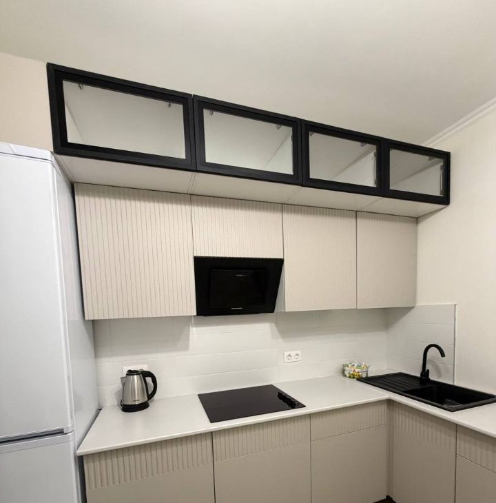 Квартира в процессе обустройства мебелью — будет все необходимое для комфортного проживания. По сравнению с фотографиями, на кухне уже появился обеденный стол, в комнатах установлены шторы, а в ванной — полки.
