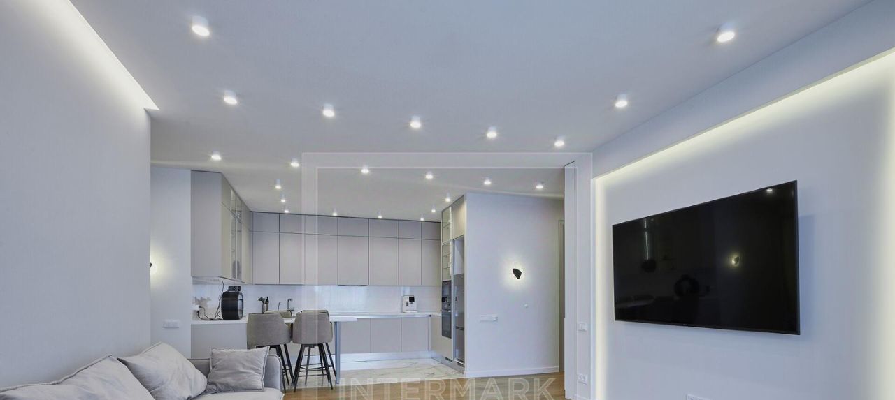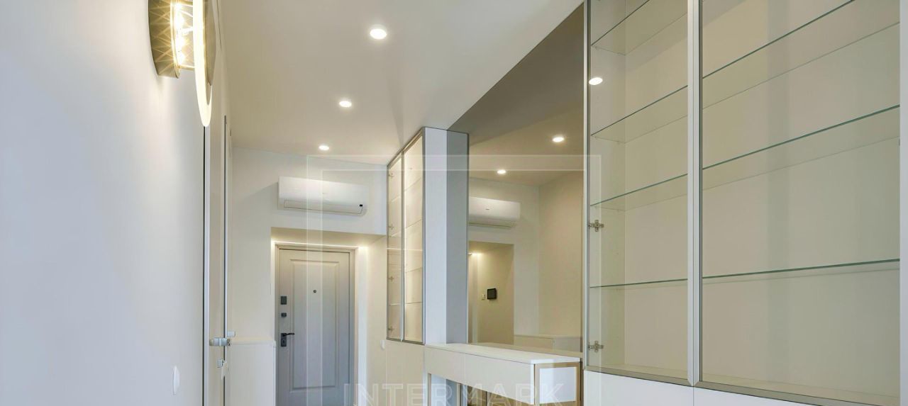 В квартире: С мебелью, Парковка, Посудомоечная машина, Стиральная машина, Сушильная машина, Бойлер, Душевая кабина, Теплые полы, Спутниковое/кабельное телевидение, Кондиционер, Видеонаблюдение, Охрана, Интернет, Видовая квартира, Можно с детьми, Европланировка, Ванна, Интерьер в современном стиле, Консьерж, Гардеробная комната, Ремонт - дизайнерский, Кухонная мебель, Окна на улицу, Окна во двор