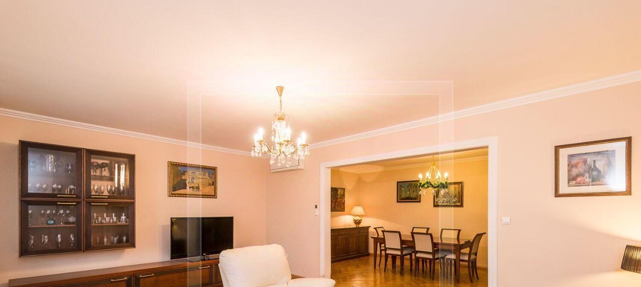 В квартире: С мебелью, Парковка, Посудомоечная машина, Стиральная машина, Сушильная машина, Бойлер, Спутниковое/кабельное телевидение, Кондиционер, Видеонаблюдение, Интернет, Балкон, Изолированная кухня, Ванна, Интерьер в классическом стиле, Консьерж, Кухонная мебель, Окна на улицу, Окна во двор