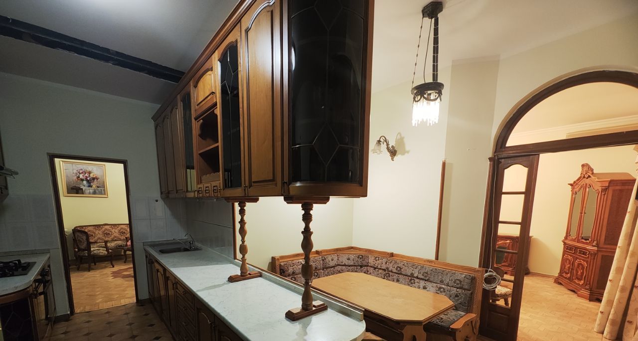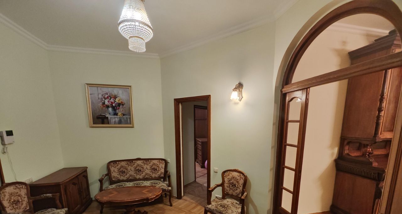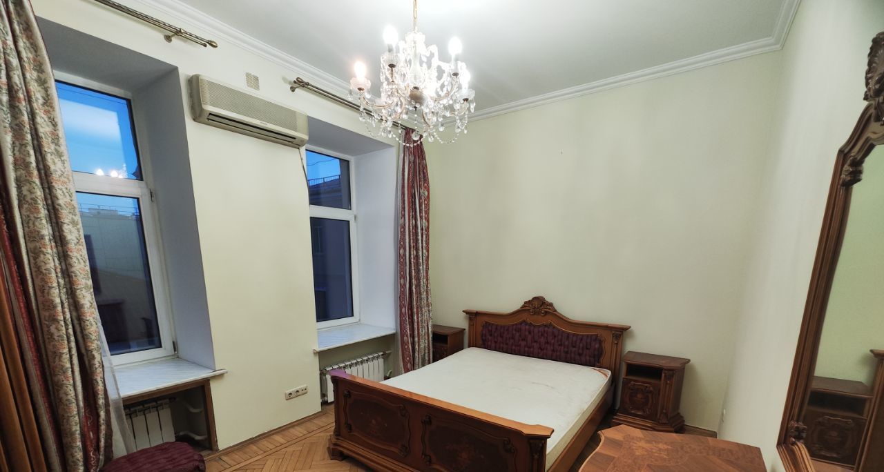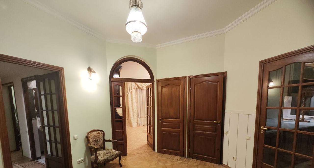 Планировка: три спальни, два санузла, большая гостиная, просторная кухнястоловая и холл. Полы — паркет, есть антикварная мебель. Окна выходят во двор, поэтому шума с Пятницкой улицы не слышно.
