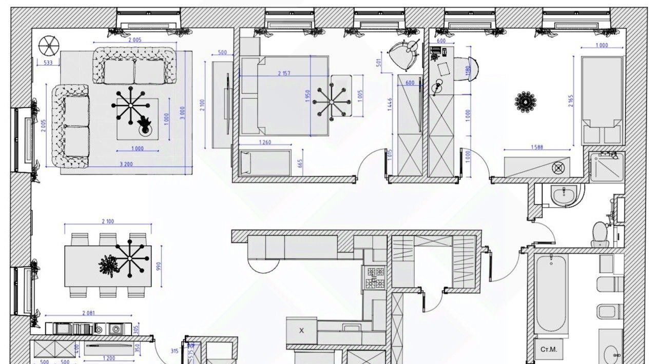 Планировка: 4 изолированные комнаты, гардеробная, 2 с/у ( с ванной и душевой кабиной), гостиная с обеденной зоной, кухня.