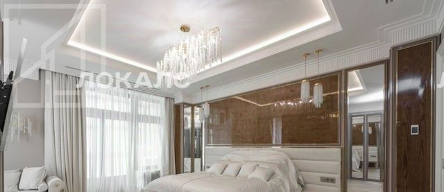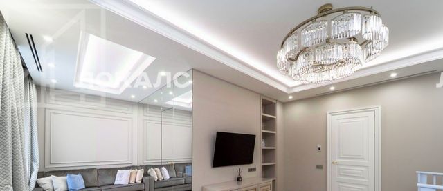 Планировка: кухня, гостиная, 3 спальни, 3 санузла, 2 гардеробные. Потолки 3,2м. Стильный дизайн квартиры дополнен элегантной мебелью и дорогими элементами декора. Вся мебель в квартире выполнена под заказ. Возможна замена мебели в детских спальнях.