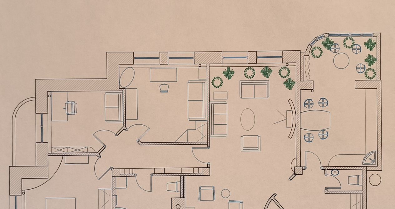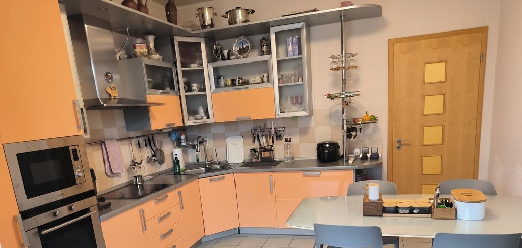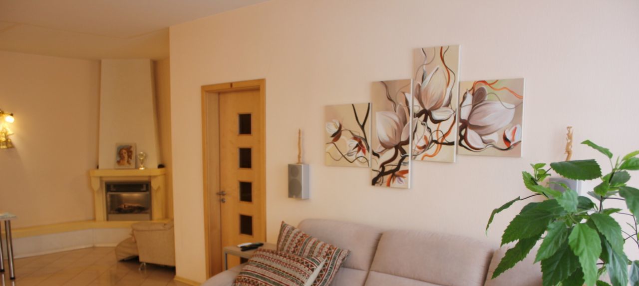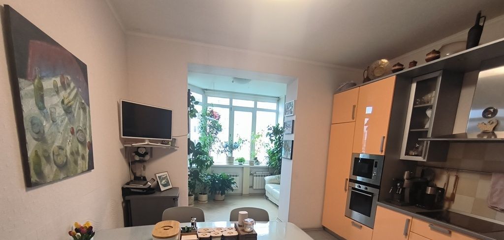 Кухня с лоджией, с зимним садом - 24 кв.м. Зал разделён на TV зону и каминную, вместе 38 кв.м. При большом желании можно переоборудовать в кухню-гостиную, а из кухни сделать мастер-спальню. Очень просторная ванная 12 кв.м., с множеством места для хранения. Главная спальня с качественной немецкой мебелью. Первая детская с дорогой итальянской мебелью и 2 спальными местами. Вторая детская, ранее была кабинетом, с выходом на открытый балкон. Балкон специально не застеклял, т.к. хорошо вечером посидеть и посмотреть на закат, дыша чистым воздухом под пение соловьёв!) Также в квартире есть второй санузел, кладовая и большая прихожая 10 кв.м. При необходимости можно сделать дополнительную, отдельную душевую. Квартира светлая и уютная, удобна для проживания семье с 2-3 детьми.