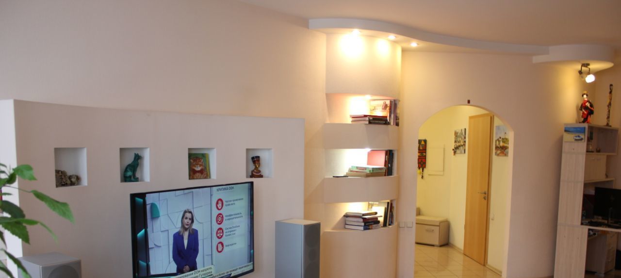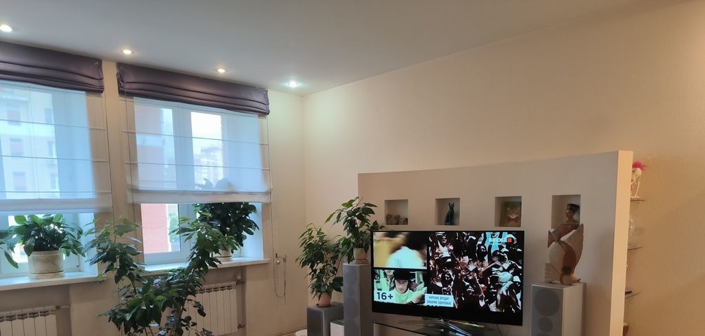 В квартире сделан дизайнерский ремонт с очень удобной планировкой. Фишка квартиры звукоизоляция! На стадии ремонта по всем внешним стенам, потолку и полу сделаны сложные работы по отсечению внешнего звука. Соседей не слышно, а они не слышат нас! Кроме того, между гостиной и спальной зоной также стена и двери с хорошей звукоизоляцией. В зале можно смотреть телевизор или громко слушать музыку, а в спальнях спокойно спать. Отсекается 90-95% звука! Это очень добавляет комфорта в жизнь. Все двери дорогие, немецкие, полнотелые, с отделкой натуральным шпоном.