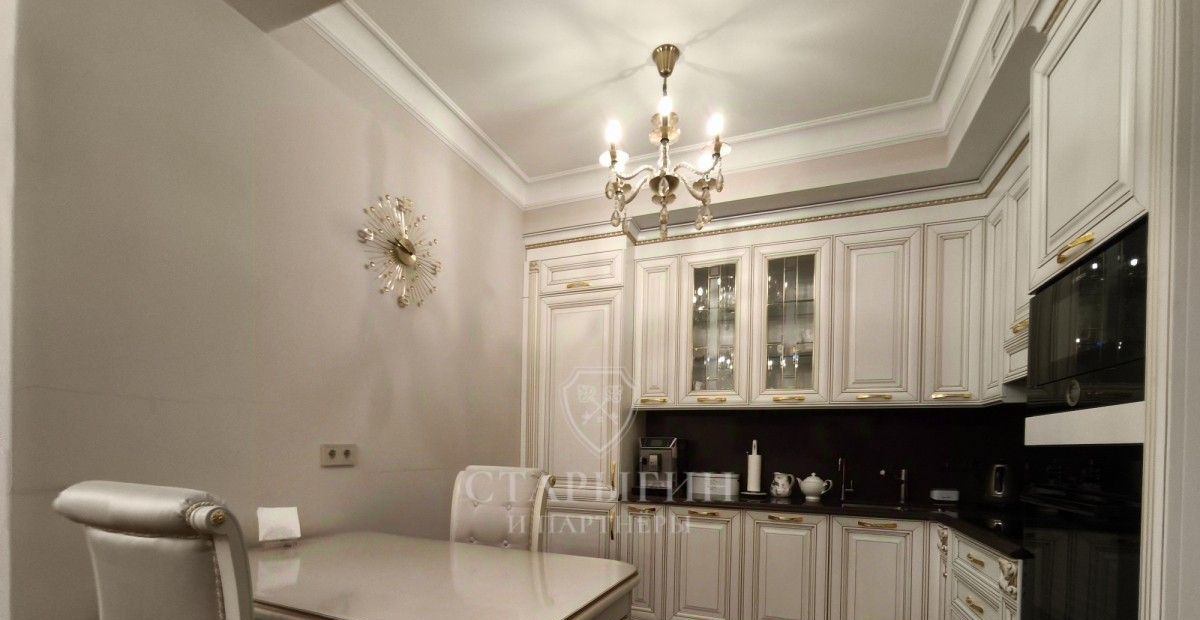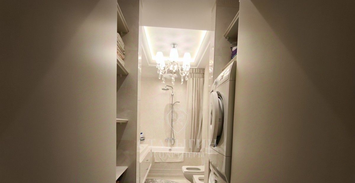 В квартире выполнен дизайнерский ремонт с использованием качественных материалов, на полу паркет из канадского дуба, установлена приточно-вытяжная система вентиляции и кондиционирования, окна выходят на две стороны, высота потолков 3.2 м, планировка состоит из: гардеробной, кладовки, двух санузлов, мастер спальни, спальни, кабинета и просторной кухни-гостиной.