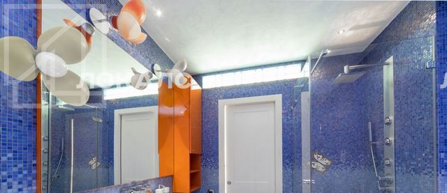 Планировка: гостиная-кухня, основная спальня с двумя гардеробными и ванной комнатой, детская со своей ванной комнатой, комната свободного назначения, гостевой туалет, балкон. Панорамные виды на город. Квартира с эксклюзивной итальянской мебелью, дорогостоящими отделочными материалами, в ванных комнатах мозаика Sicis.