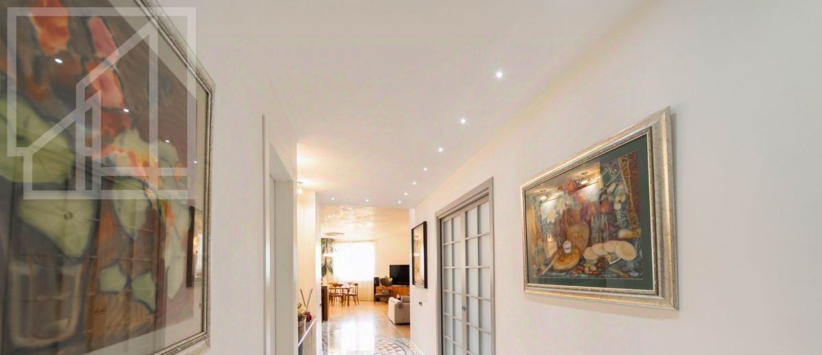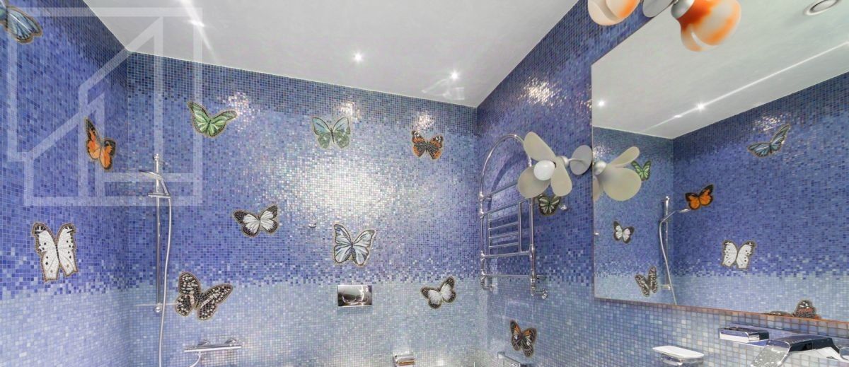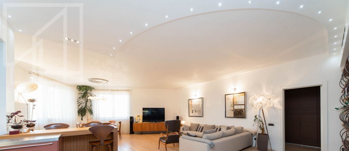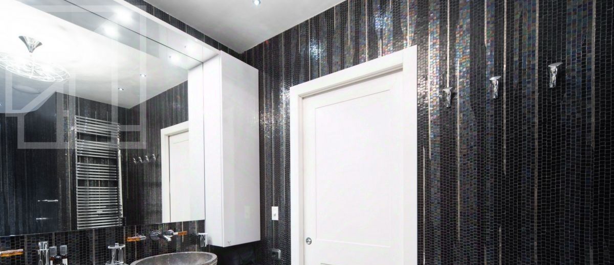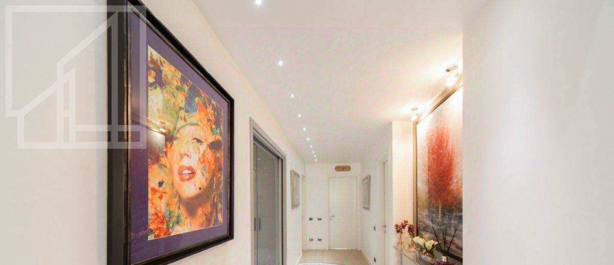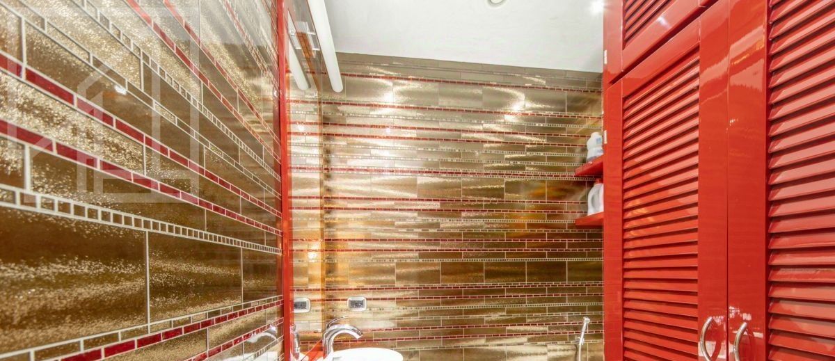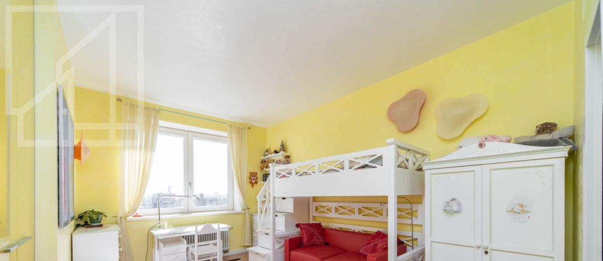 Планировка: гостиная-кухня, основная спальня с двумя гардеробными и ванной комнатой, детская со своей ванной комнатой, комната свободного назначения, гостевой туалет, балкон. Панорамные виды на город. Квартира с эксклюзивной итальянской мебелью, дорогостоящими отделочными материалами, в ванных комнатах мозаика Sicis.
