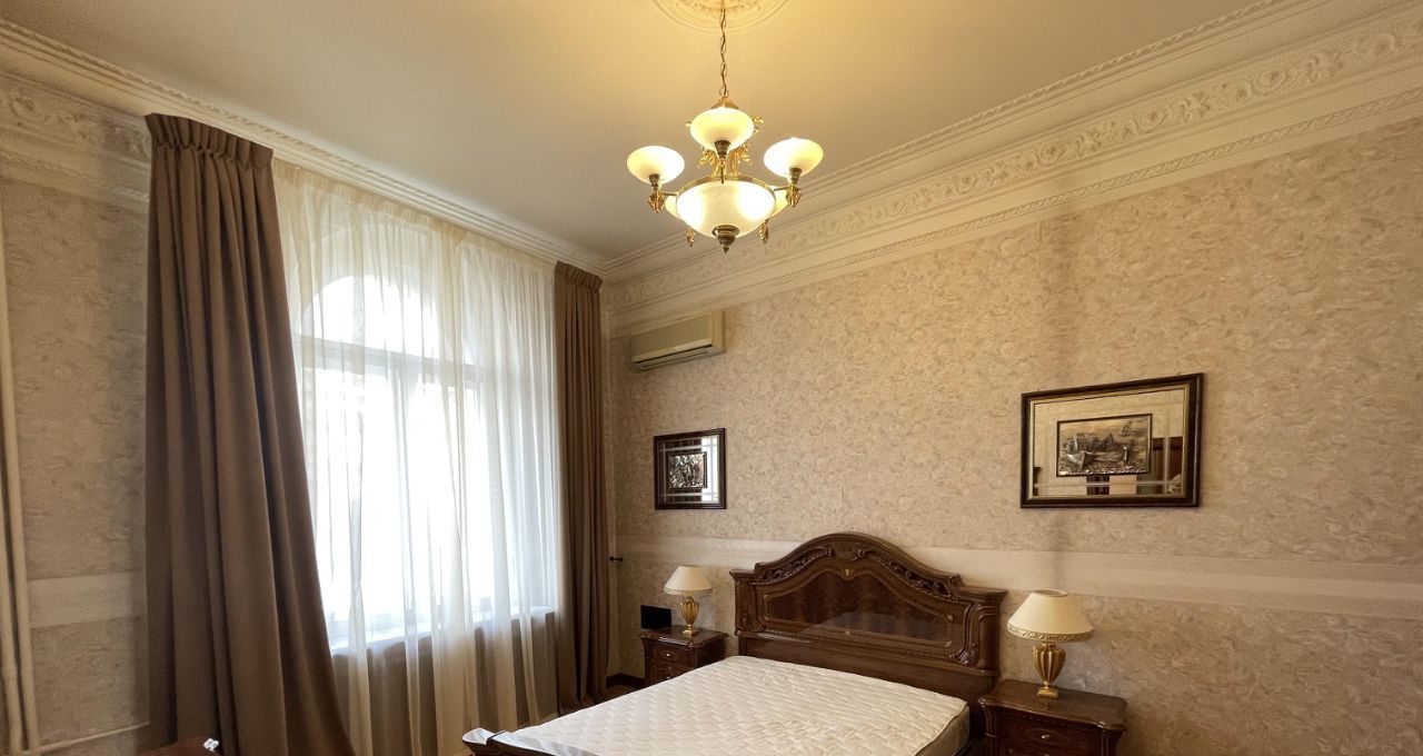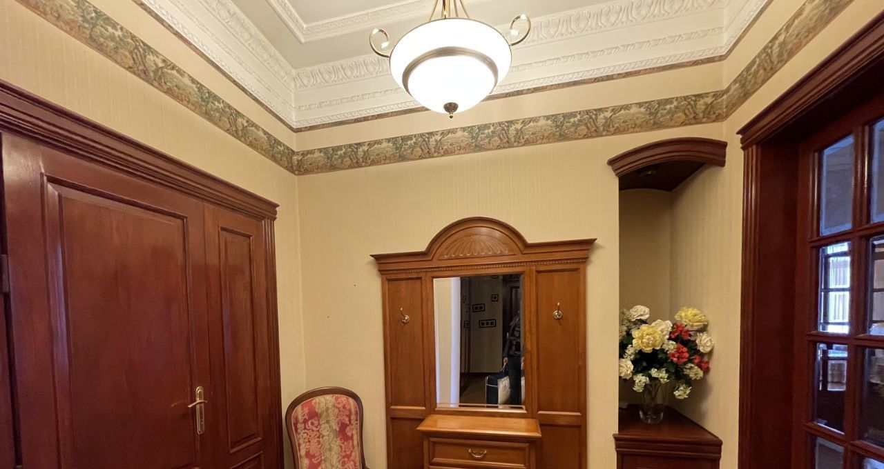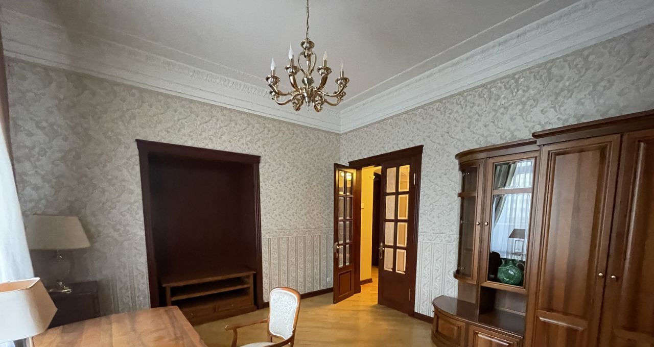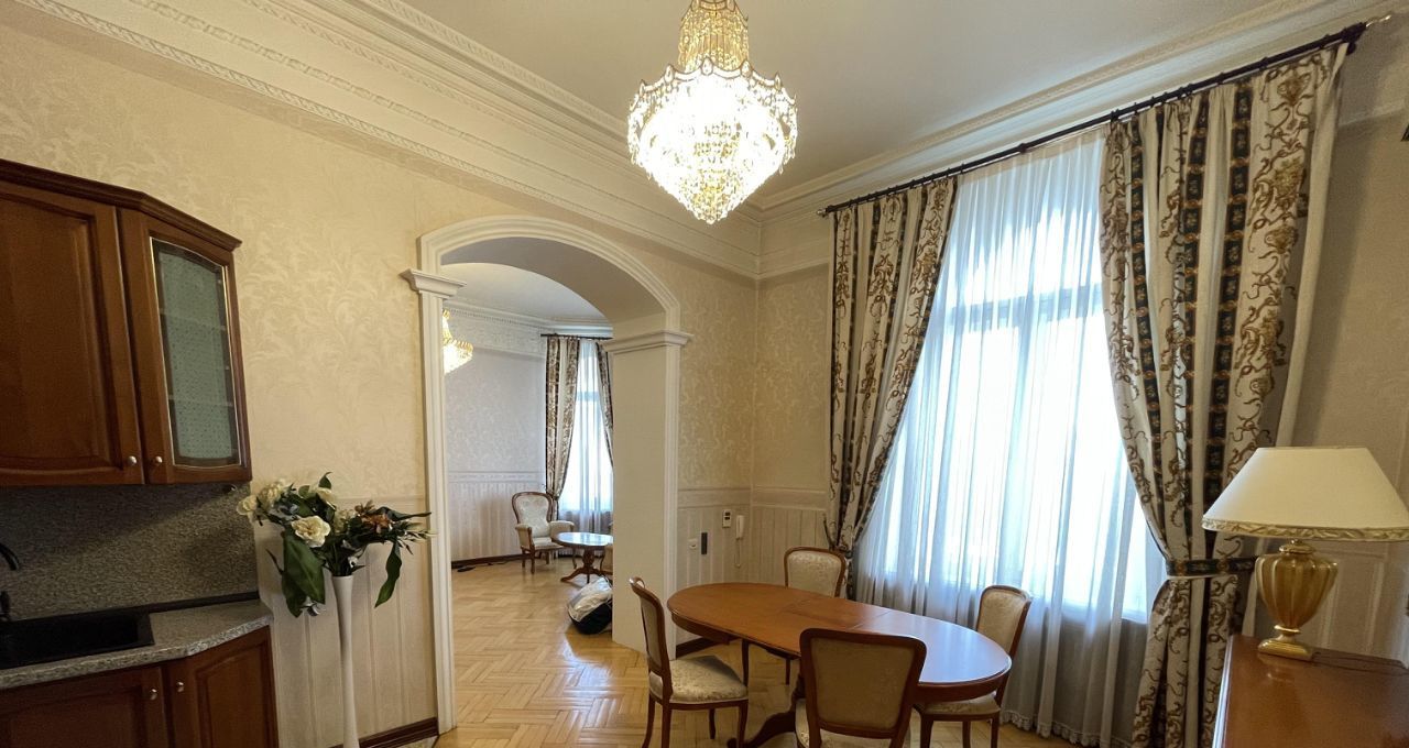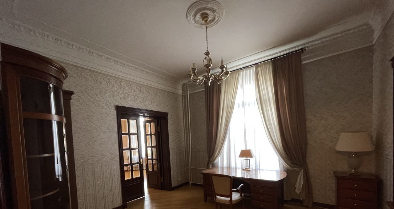 Сдаётся просторная четырёхкомнатная квартира в кирпичном доме 1949 года постройки, расположенная на 4 этаже из 8. Общая площадь — 150 кв. м, жилая площадь — 125 кв. м, кухня — 20 кв. м. Высокие потолки 4 метра создают ощущение простора. Всего в квартире два совмещённых санузла, окна выходят на улицу. До станции метро "Маяковская" всего 3 минуты пешком.