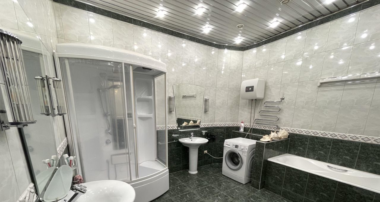 В квартире сделан качественный евроремонт. Здесь есть всё необходимое для комфортного проживания: кондиционер, холодильник, посудомоечная машина, телевизор и стиральная машина. Мебель установлена как на кухне, так и в комнатах. В ванных комнатах вас ждут как ванна, так и душевая кабина — выбирайте на свой вкус.