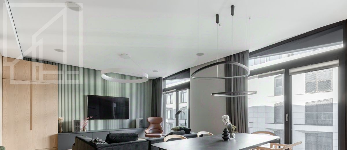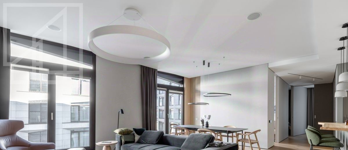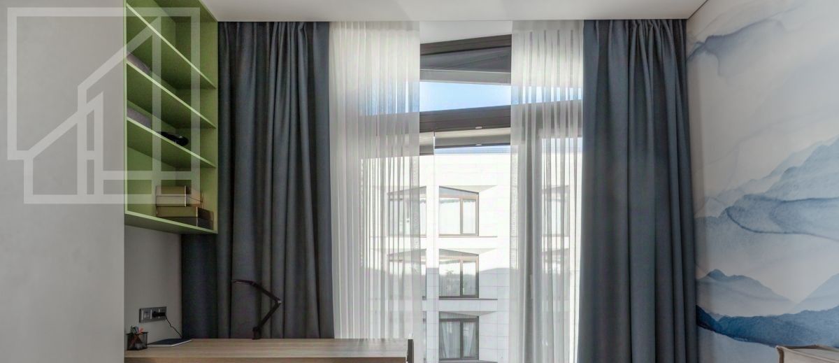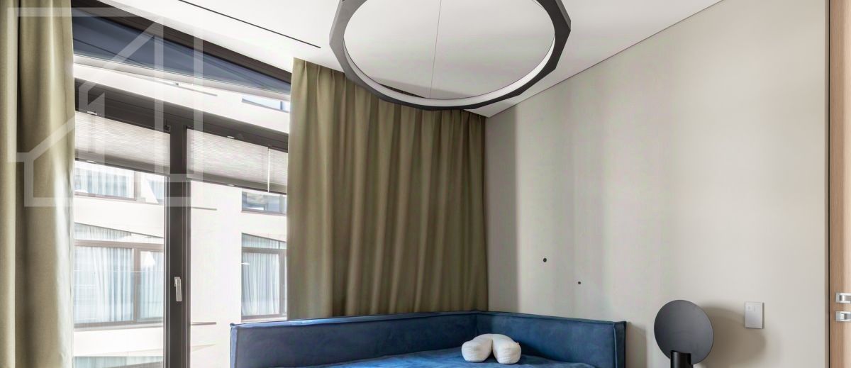 Планировка: просторная кухня-гостиная с панорамными окнами и французскими балконами, мастер-спальня с отдельной ванной комнатой и душевой, две детские комнаты (можно использовать как кабинеты), гостевая комната, гардеробная и постирочная. Выполнен дизайнерский ремонт по авторскому проекту. Апартаменты полностью меблированы и оснащены всей необходимой техникой.