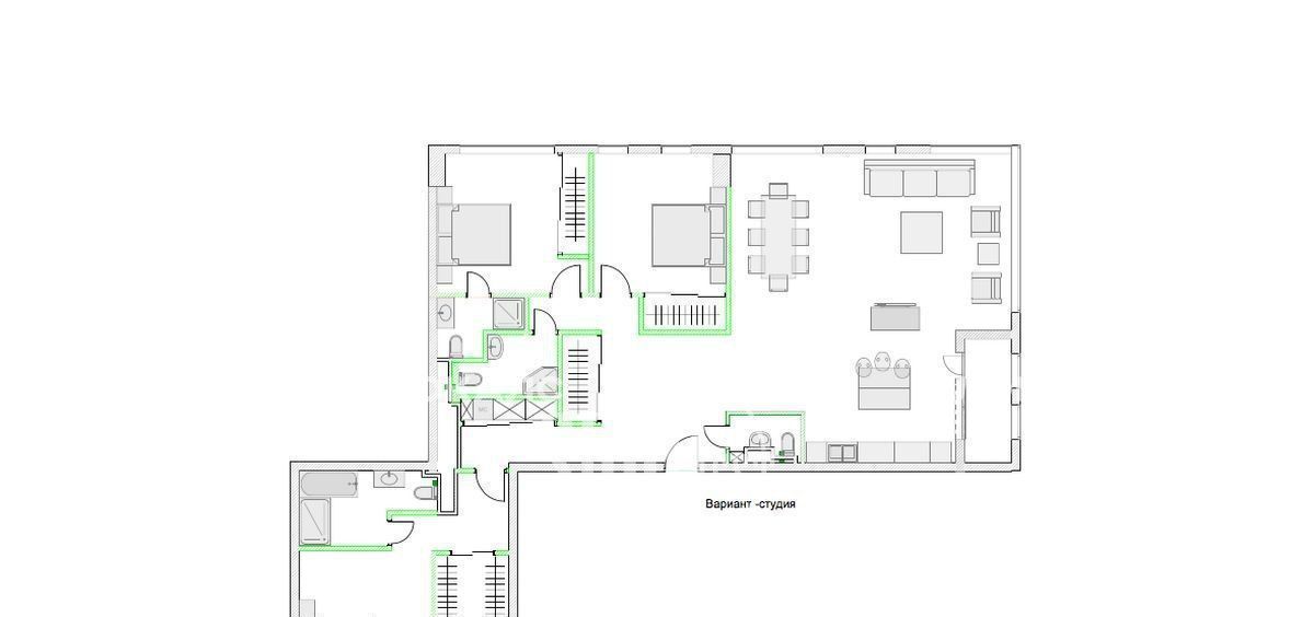 -Две спальни- каждая со своей ванной комнатой и гардеробной;