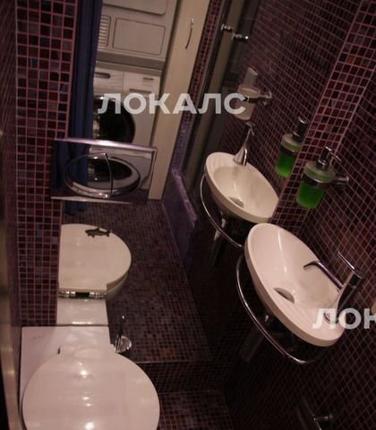Два санузла: в большом санузле установлена вместительная угловая ванна, гарнитур с зеркалом и сантехническая инсталляция; в малом санузле располагается душевой уголок, сантехническая инсталляция, а также стиральная машина марки Miele и сушильная машина марки Miele.