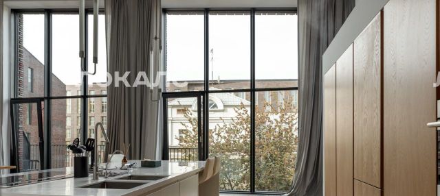 Ключевой особенностью объекта является редкая планировка с панорамным остеклением во всю высоту и двусветной гостиной с потолками 9 метров, что создает ощущение простора и наполняет пространство обилием естественного света.
