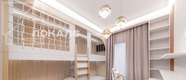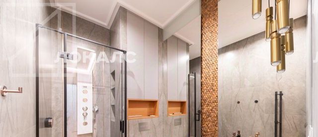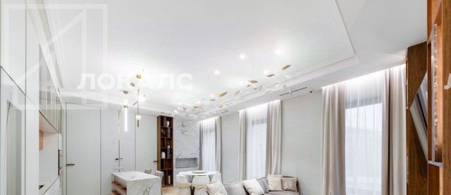 Планировка: кухня-гостиная, в столовой зоне имеется действующий камин, гостевая спальня, детская спальня со своим санузлом, основная спальня со своим санузлом, прихожая и гостевой санузел. Потолки 3,4м. В квартире выполнен высококачественный ремонт с продуманным дизайном.