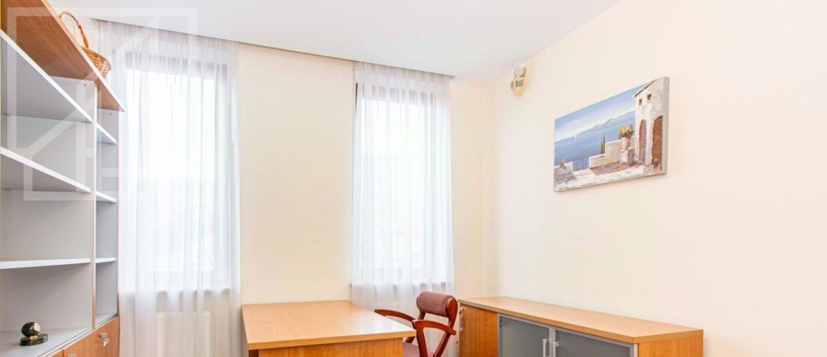 Планировка: гостиная с кухней и столовой, две изолированные спальни, кабинет, две ванные комнаты. Потолки 3,2м. Выполнен авторский ремонт в современном стиле. Квартира полностью укомплектована мебелью и техникой. Установлены: современные кондиционеры, интернет, теплые полы, домофон, бойлер. Вид из окон на благоустроенную территорию.