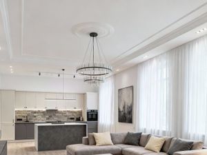 В квартире имеется отдельная постирочная комната, большая гардеробная, 2 изолированные комнаты, мастер-спальня, кухня-гостиная общей площадью 30 кв.м., 2 просторные лоджии.