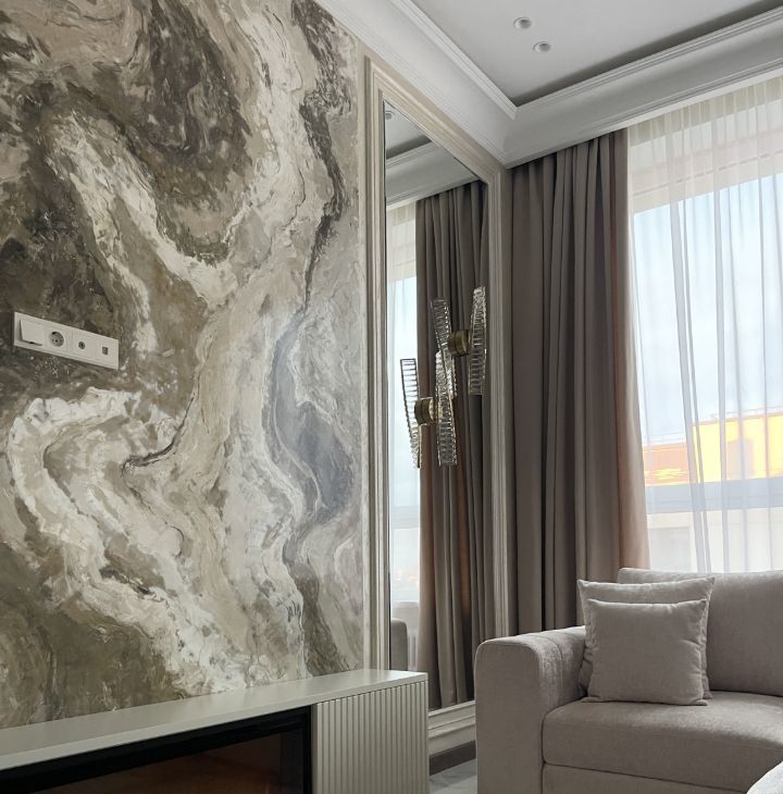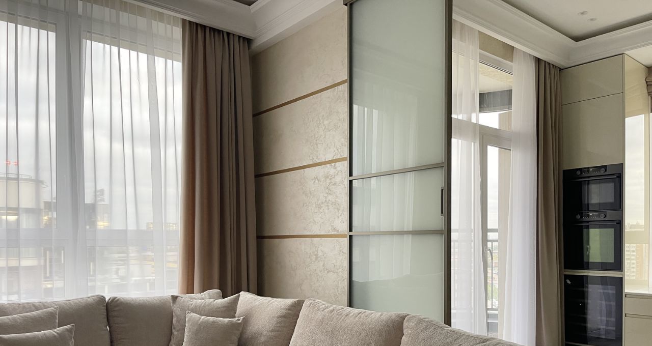 В квартире имеется отдельная постирочная комната, большая гардеробная, 2 изолированные комнаты, мастер-спальня, кухня-гостиная общей площадью 30 кв.м., 2 просторные лоджии.