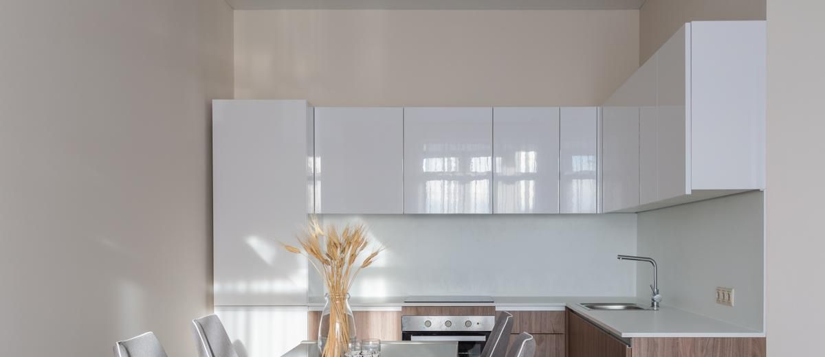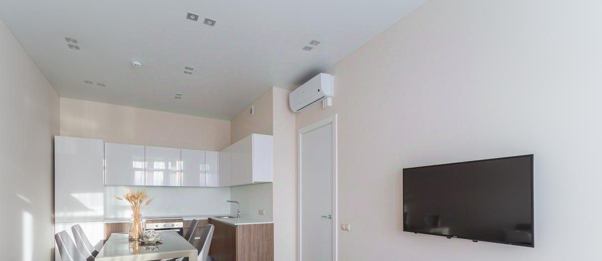 Квартира с индивидуальным интерьерным решением в современном стиле, качественной отделкой, мебелью и техникой для жизни от ведущих брендов (Hotpoint Ariston):