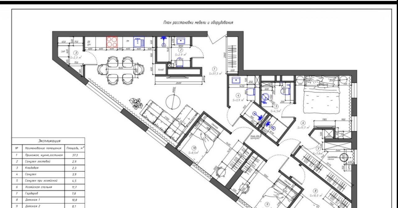 — 4 комнаты, включая мастер-спальню