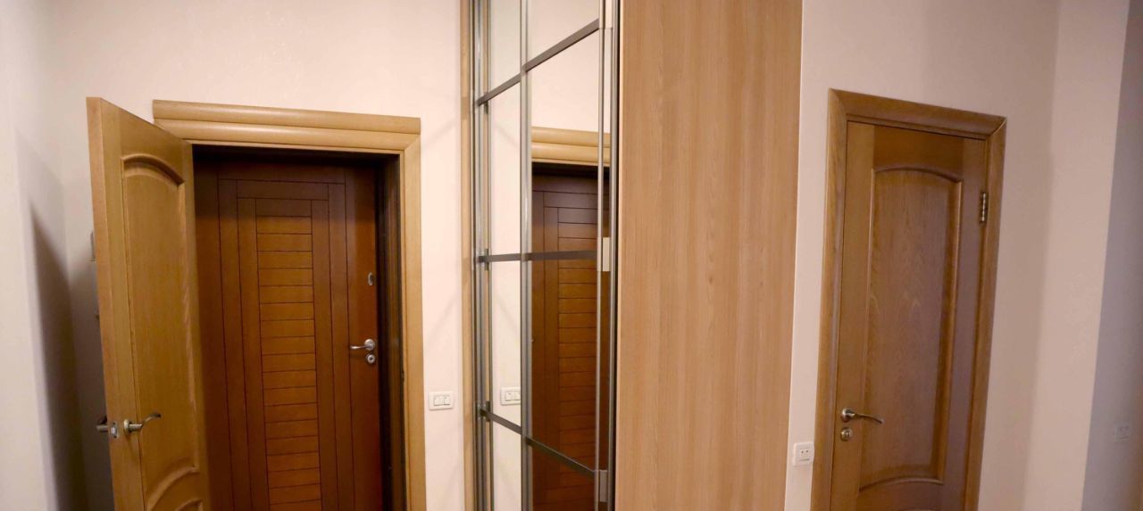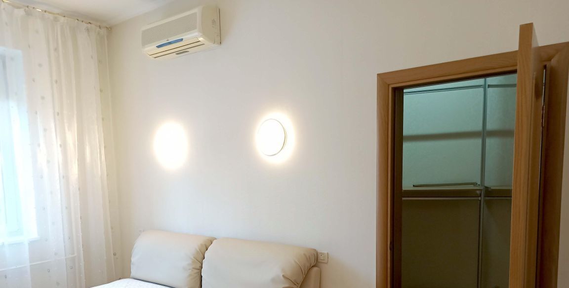В квартире выполнен качественный евроремонт, присутствует вся мебель и техника от ведущих производителей, включая рольставни на все окна, кондиционеры во всех помещениях. Подогрев пола, сигнализация.