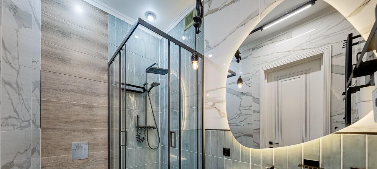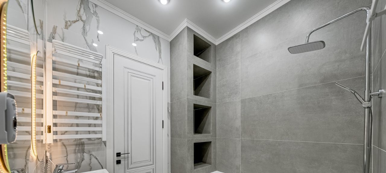 2 ванных комнаты. Беспороговая планировка дает возможность уборки роботом-пылесосом всей квартиры.
