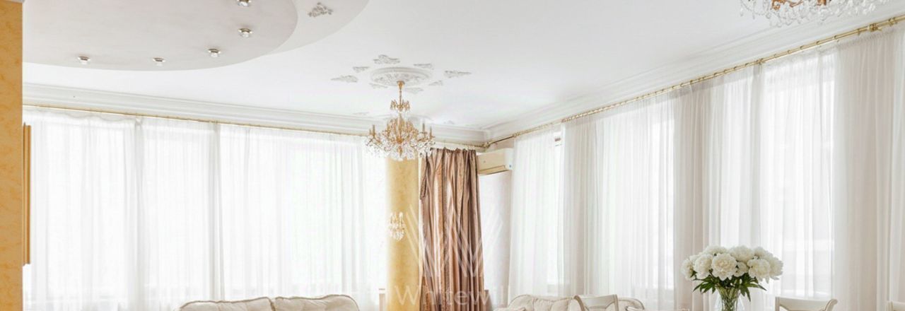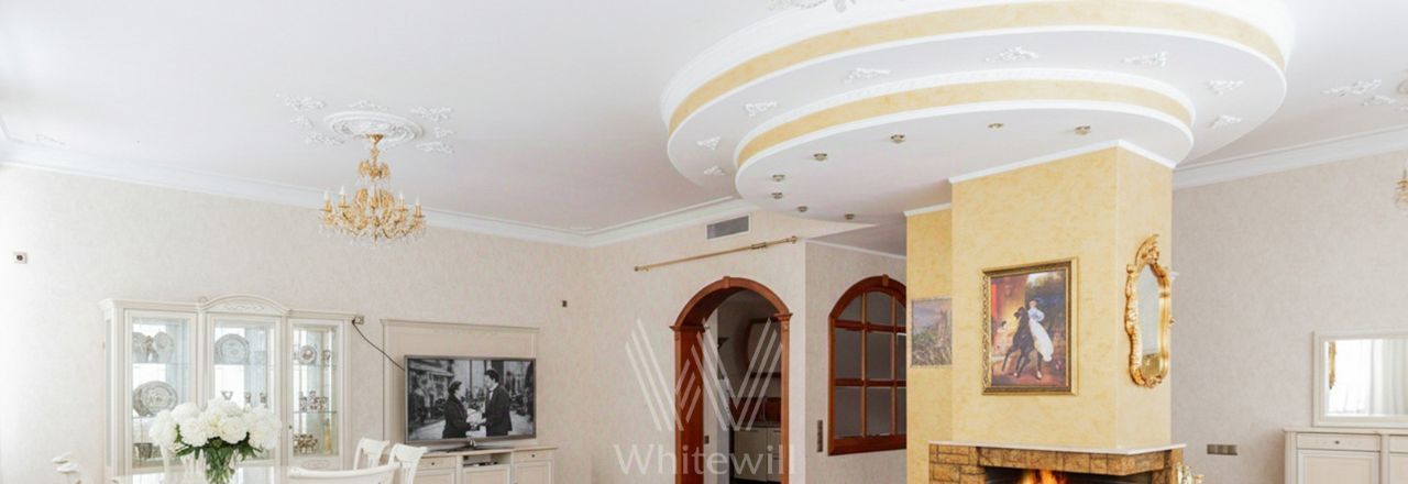 Квартира с 3 спальнями в "Доме Пороховщикова" в районе Арбата. Квартира общей площадью 188 м² расположена на 2 этаже. Выполнен дизайнерский ремонт в классическом стиле в тёплых светлых тонах. Интерьер украшают колонны и хрустальные люстры, в гостиной установлен дровяной камин. Спланирована просторная гостиная-столовая с зоной кухни, 2 спальни со своими санузлами, комната свободного назначения, гостевой санузел, гардеробная, холл. Квартира полностью меблирована и оборудована бытовой техникой. Большое количество окон наполняют пространство светом и воздухом.
