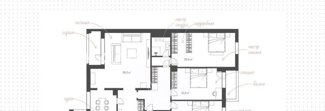 Спланирована просторная гостиная, кухня с обеденной зоной, мастер-спальня с гардеробной и санузлом, две спальни, две ванные комнаты, функциональные коридоры, две лоджии. Квартира полностью меблирована и оборудована бытовой техникой. Окна ориентированы на две стороны, открываются виды на улицу и в тихий двор.