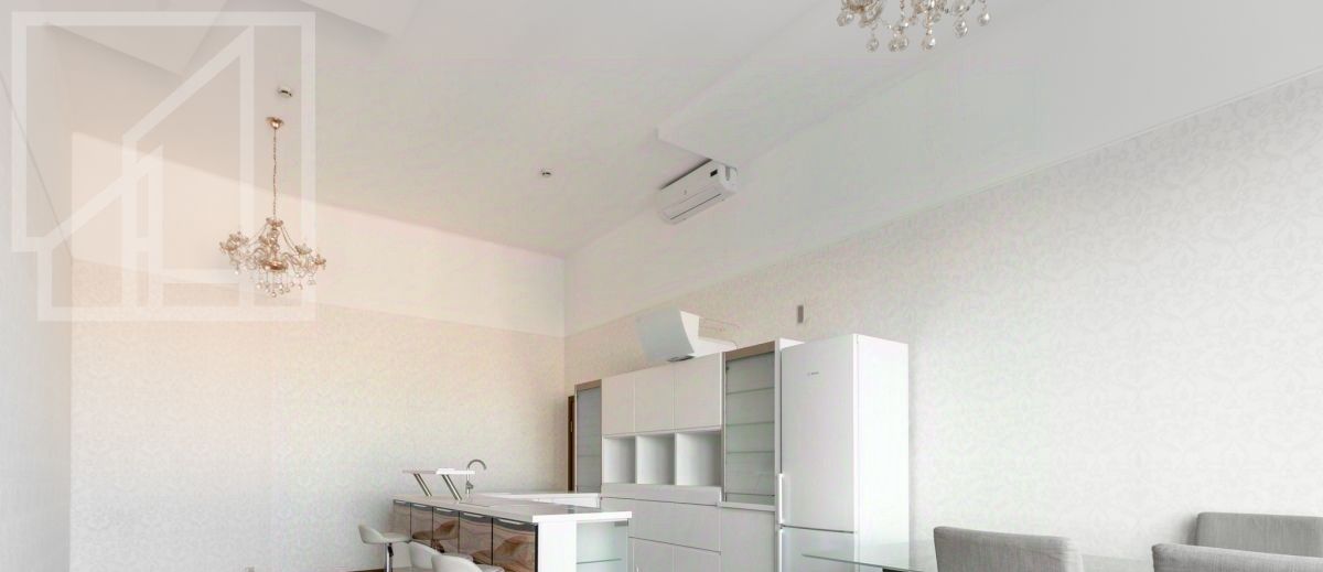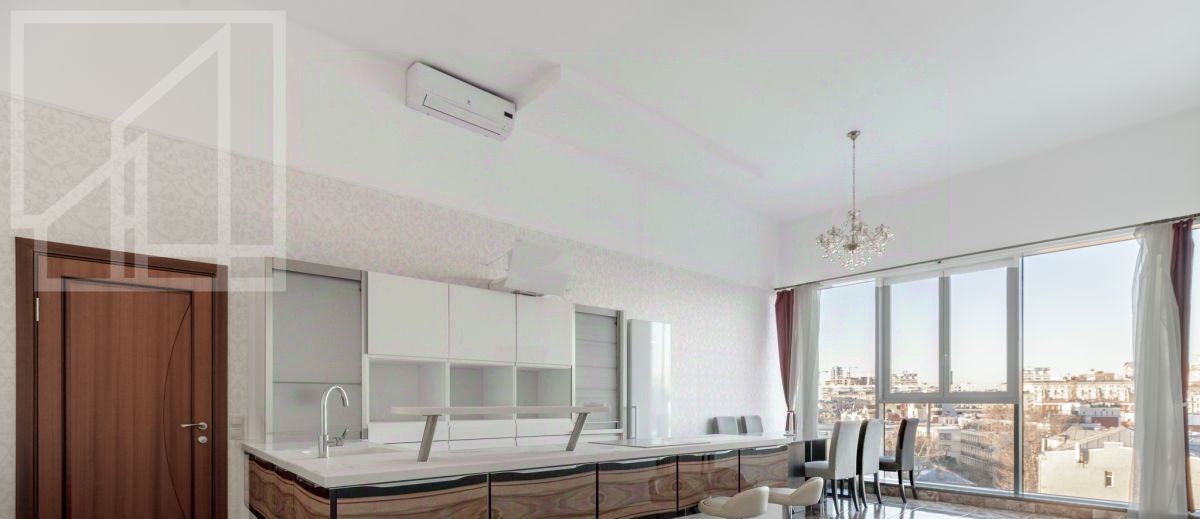 Планировка: гостиная с обеденной зоной и кухней, три спальни, три санузла, гардеробная комната. Потолки 4м. Квартира частично меблирована и полностью оборудована всей необходимой техникой: посудомоечная машина, холодильник, кондиционер, бойлер, душевая кабина, ванна, стиральная машина, подогрев полов, телевизор. Ремонт выполнен в современном стиле.