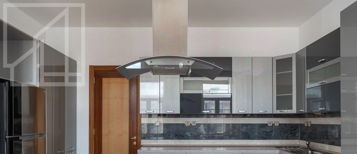 Планировка: большая гостиная объединена с кухней (но есть отдельный на кухню вход), три спальни, гардеробная, два совмещенных сан.узла с ванной и душевой кабиной, гостевой туалет, постирочная. Окна выходят на обе стороны (спальни во двор). Потолки 3.20. Квартира без мебели, оборудована всей необходимой бытовой техникой, водонагреватель, кондиционеры установлены, интернет WiFi подключен.
