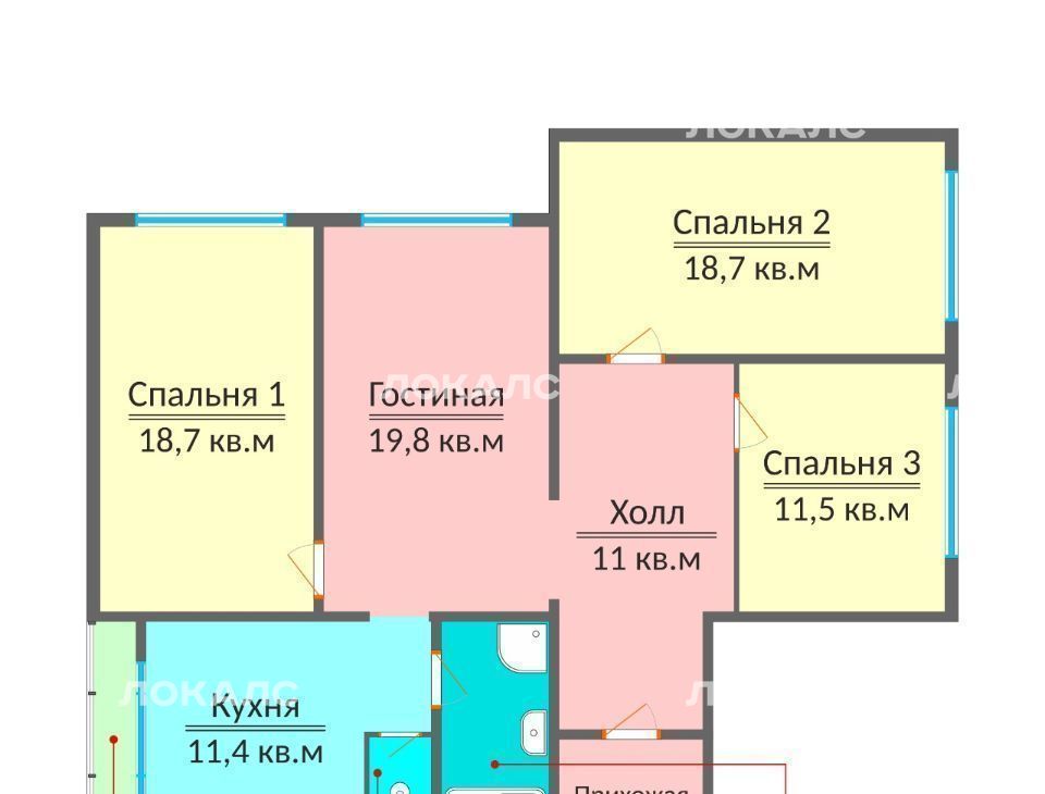 Четырехкомнатная квартира площадью 100 квадратных метров оборудована всей необходимой техникой и оснащена мебелью.
