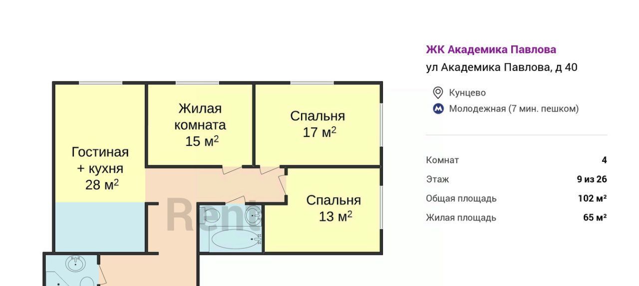 4-к кв. Москва ул. Академика Павлова, 40 (102.0 м²)
