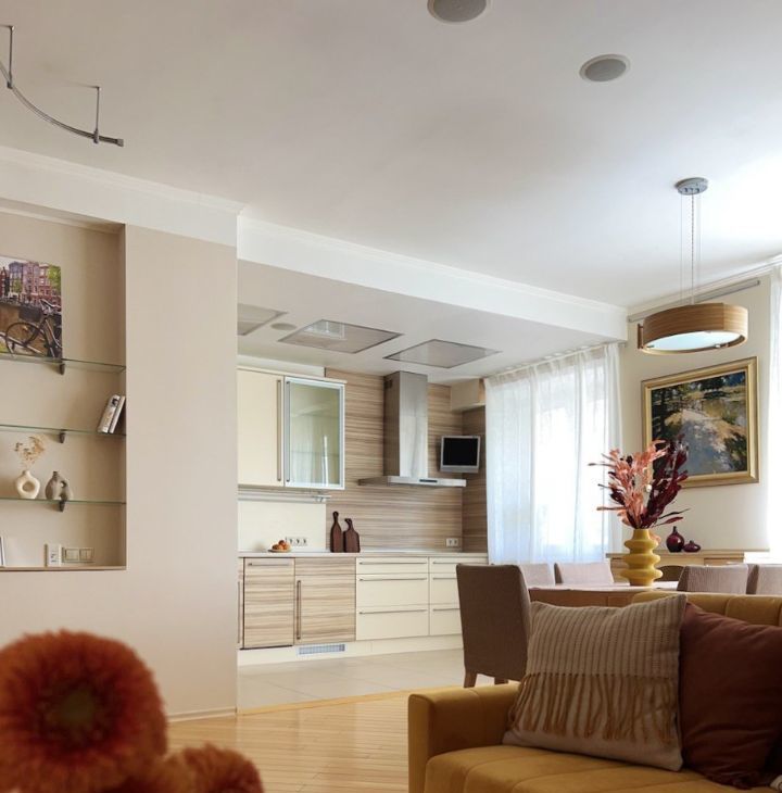Качественная японская приточная вентиляция, климат-контроль, стиральная и сушильная машины Miele, бойлер на случай отключения горячей воды, бытовая техника Miele (встроенная пароварка, духовка-микроволновка, электрическая плита, большой холодильник, отдельная морозилка на 4 ящика, посудомоечная машина, измельчитель бытовых отходов).