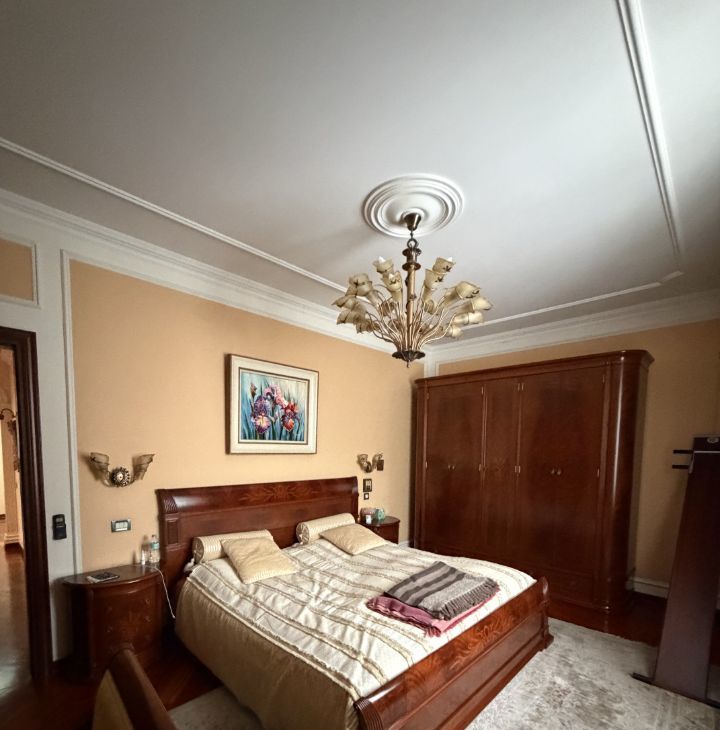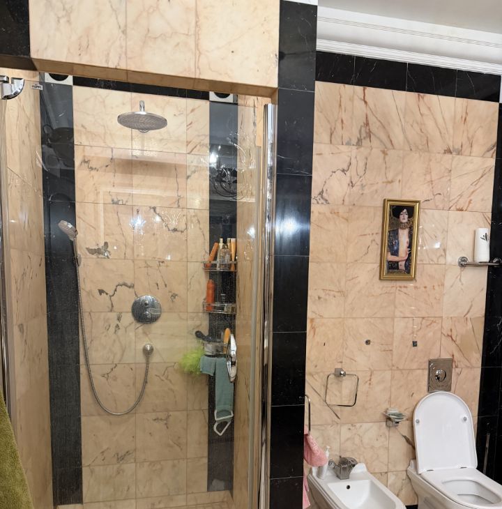 В гостиной установлен вместительный шкаф и телевизор. В спальнях установлены удобные кровати и шкафы. В ванной комнате современная сантехника , джакузи - ванна и большая душевая кабина.