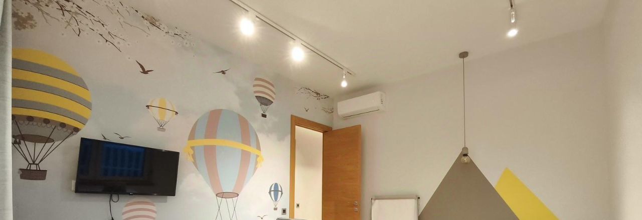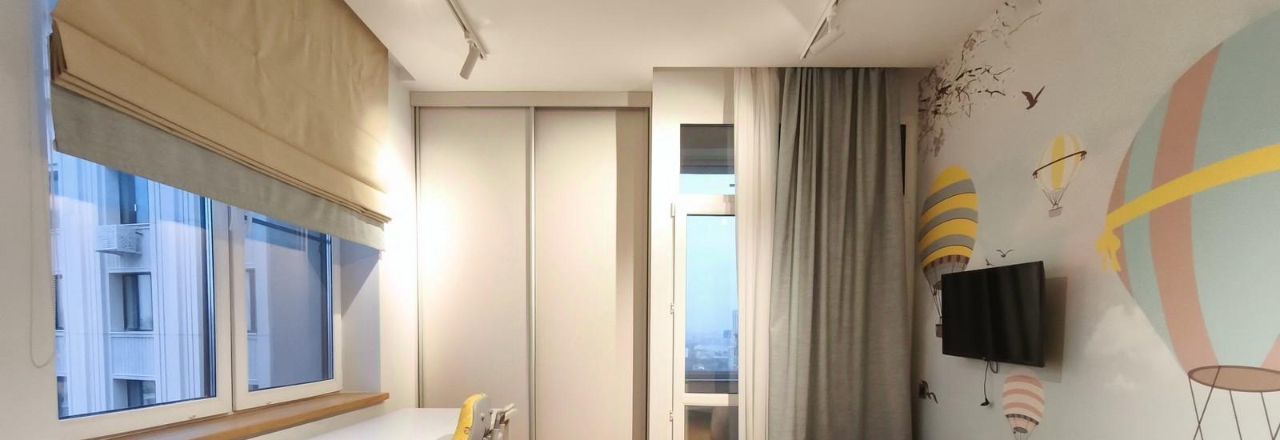 В малой спальне (кабинет или детская) полуторная кровать, шкаф, рабочий столик, ТВ. Вторая спальная (большего размера), сейчас устанавливается мебель, имеет выход на застекленную лоджию. Третья, взрослая спальная, с роскошной кроватью, большим ТВ и фотообоями с деревьями. Везде плотные шторы для комфортного сна. В каждой комнате по кондиционеру.